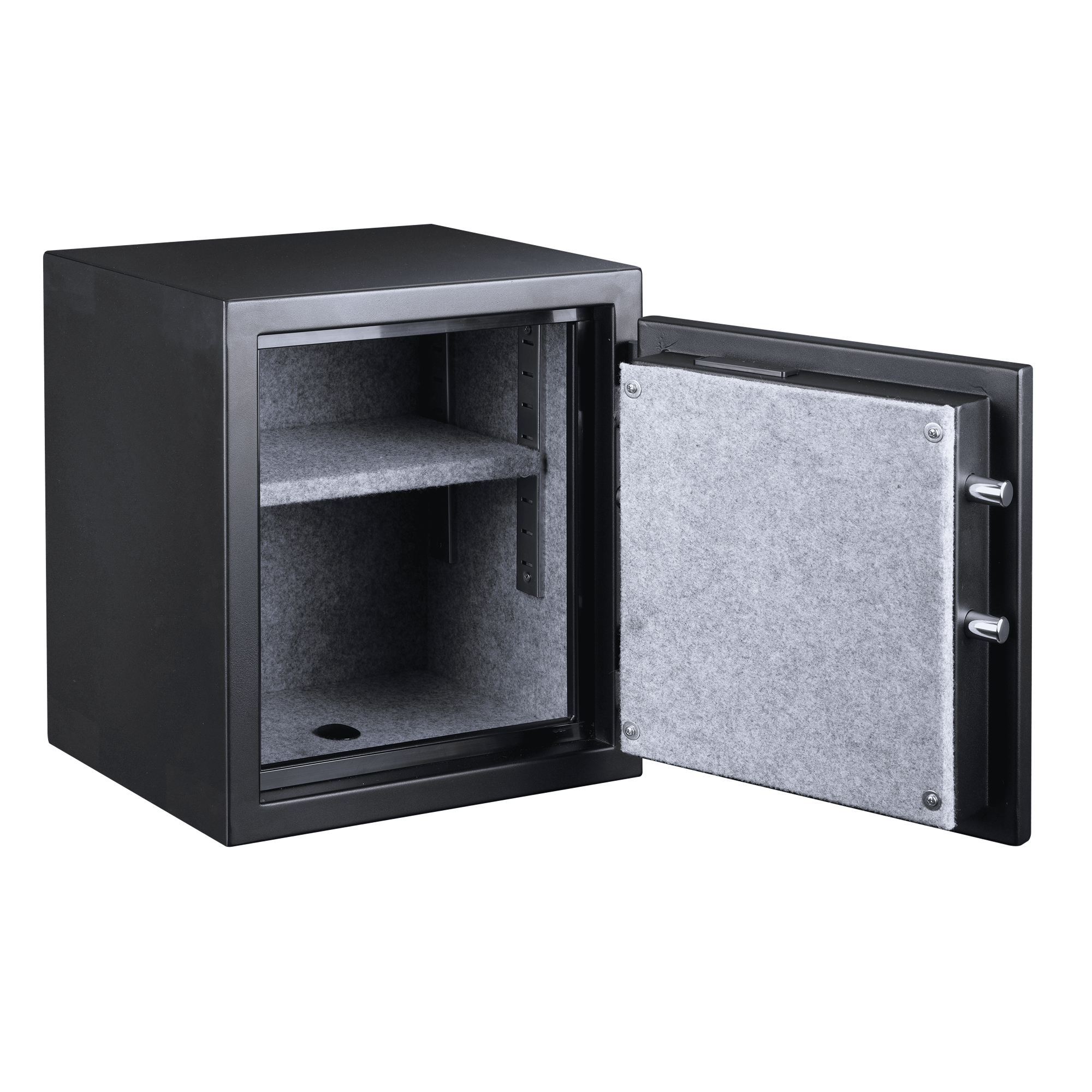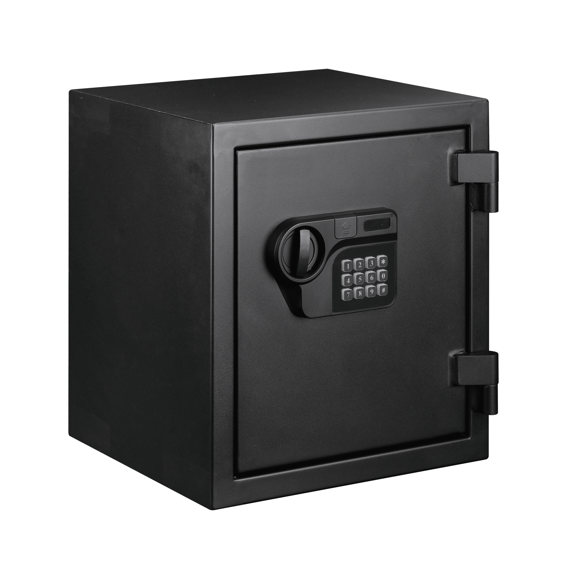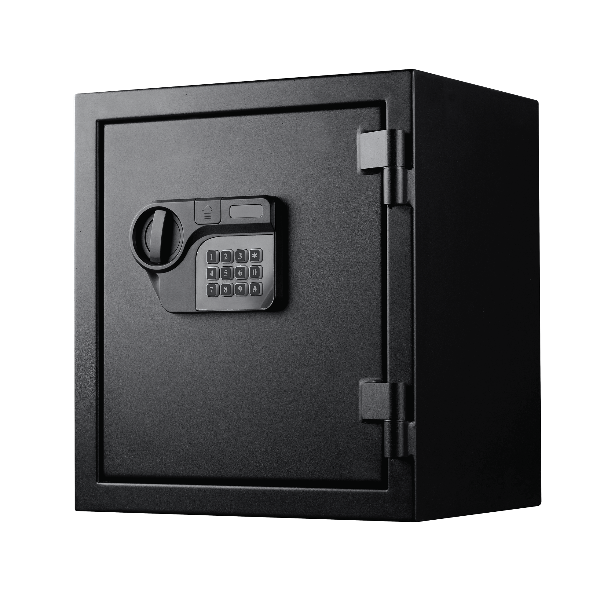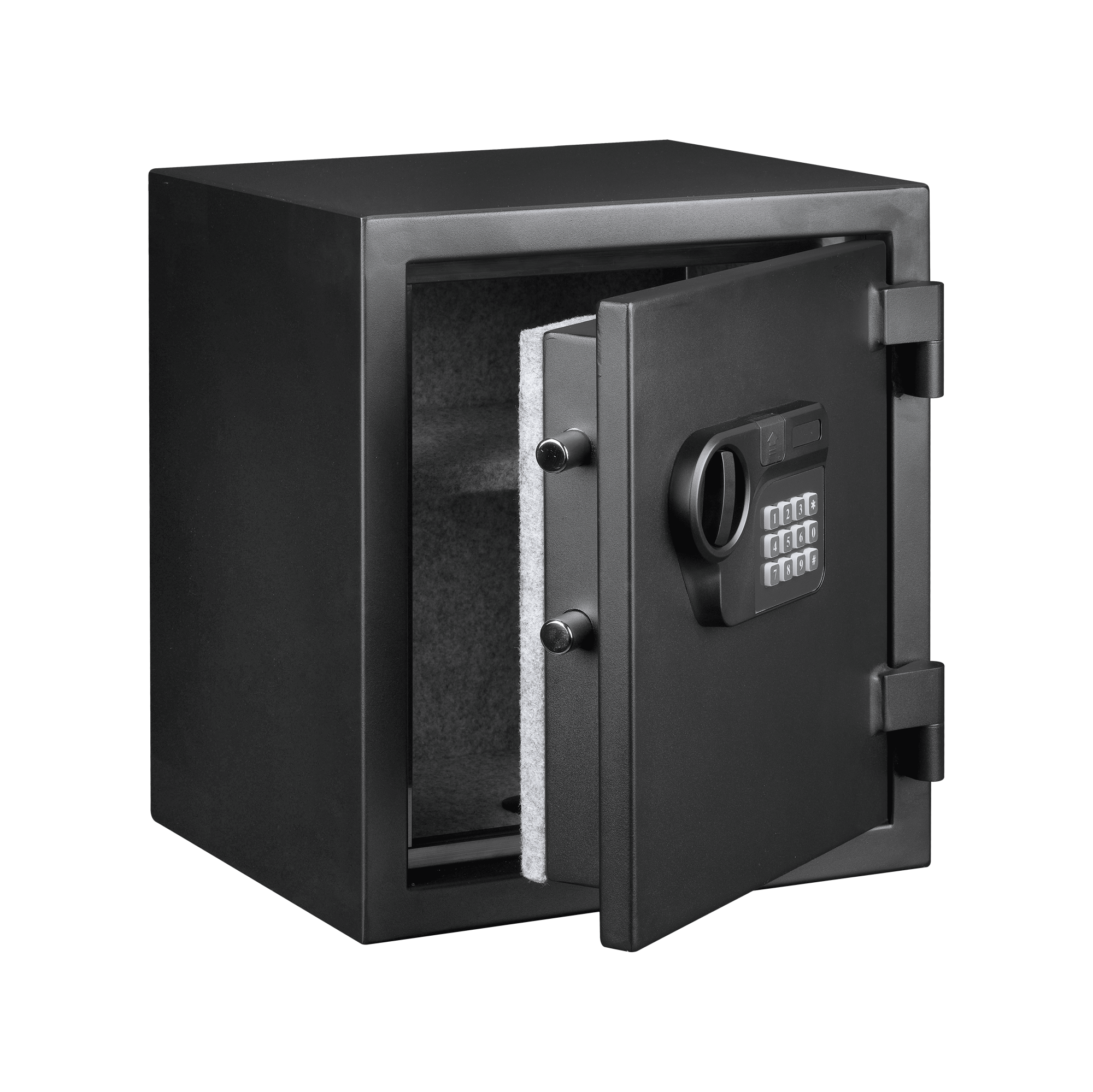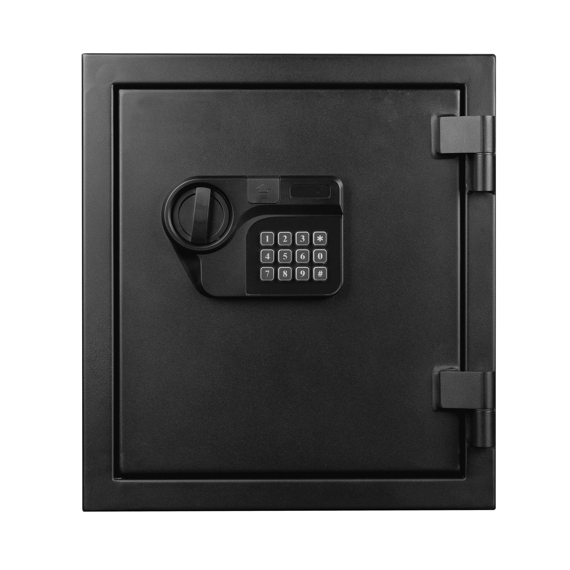 Description: Electronic combination lock with high visibility LED display screen. Programmable 4 or 6 digit pin code. Comes with back up key (supplied with 2 keys) and manager master code in case of lock out. Motorized locking bolts which open the safe door automatically after entering the correct pin code.